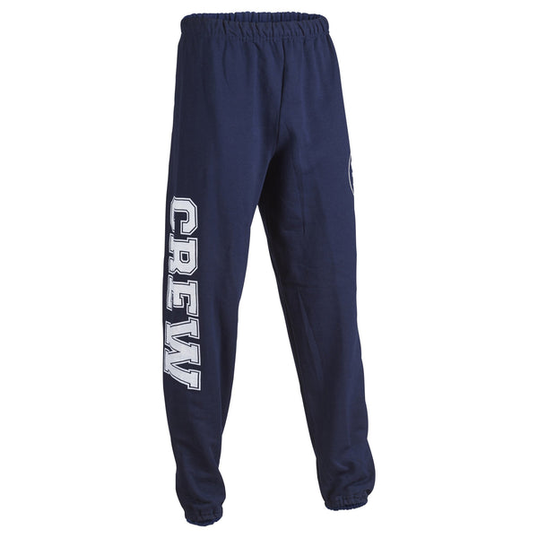 Show off your favorite sport out of the boat, too. Bold, oversize collegiate CREW imprint, heavy-duty 11oz sweat pants. Perfect for the gym, training, a  Saturday afternoon, or as a warm-up pant. Match with our full zipper CREW sweatshirt or your team uniform.